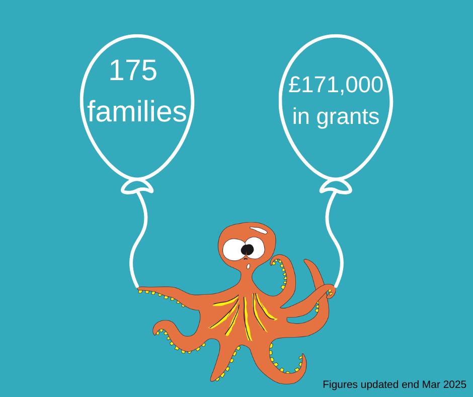 Since our charity began in 2009, we've helped 175 families and given out over £171,000 in family grants.