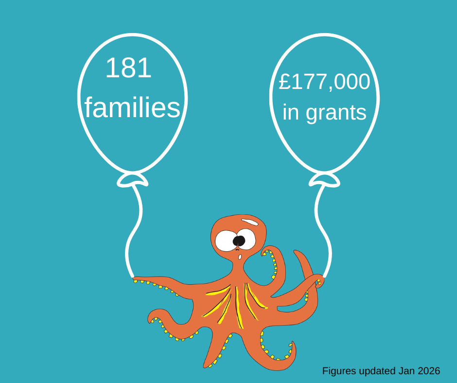 Since our charity began in 2009, we've helped 181 families and given out over £177,000 in family grants.